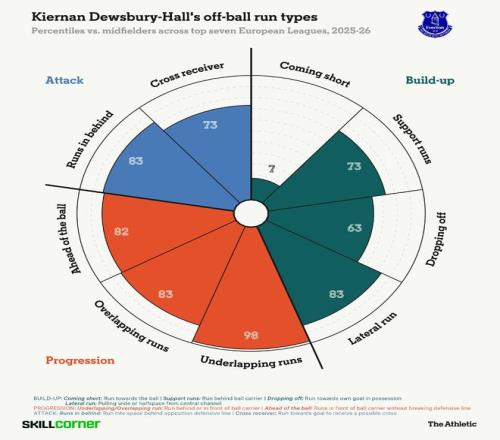 但現(xiàn)在情況不同了。最近幾周,迪尤斯伯里-霍爾一直踢他偏愛的8號位,這也是他在萊斯特城磨練技藝的位置。這個(gè)位置調(diào)整給了他更多的防守責(zé)任,但也幫助了埃弗頓的組織推進(jìn)。盡管起初有人擔(dān)心球隊(duì)中場會(huì)因此失去一些身體對抗性,但他提供了充沛的能量和拼搶。迪尤斯伯里-霍爾是本賽季英超僅有的兩位能創(chuàng)造20次以上機(jī)會(huì)、完成25次以上搶斷、贏得50次球權(quán)并贏得75次對抗的中場球員之一。