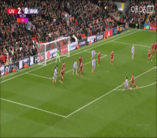 第60分鐘,薩拉赫角球助攻,?;倏祟^球破門(mén)本場(chǎng)完成梅開(kāi)二度,利物浦2-0布萊頓。
